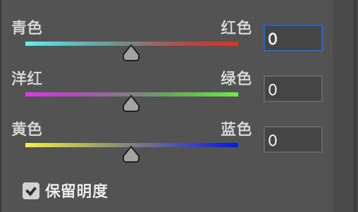 如果不勾选“保留明度”,当同时将调整滑块中单个或多个向右拖动,均是趋于白色的,会使图像变亮,因为右侧是加色原理的三原色;当同时将调整滑块中单个或多个向左拖动,均是趋于黑色的,会使图像变暗,因为右侧是减色原理的三原色。勾选该项,将只调整各单色调整多少的差别,而不考虑同时变亮的情况。