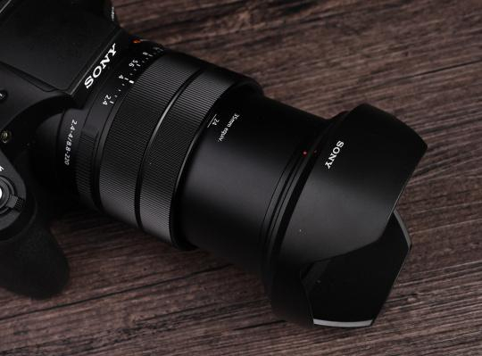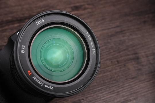 RX10 IV最大的亮点除了传感器之外就是采用了蔡司的24-600mm F2.4-F4的大变焦镜头。这支镜头也理所当然的打上了红色T*镀膜的标识。它的口径升级到了72mm,属于大块头的重量级产品了。T*镀膜呈现出了淡绿色,非常的漂亮。蔡司的身份加上大光圈镜头,这让人第一眼看上去就知道RX10系列的高端定位了。