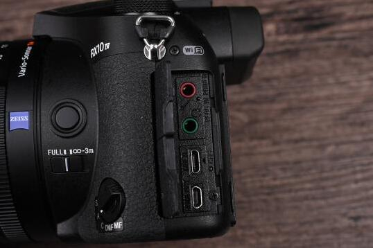 RX10 IV的左侧是相机的数据接口位置。主要提供了麦克风输出,耳机输出,数据传输与HDMI四个接口,可以基本满足大多数用户的需求。尤其还提供了音频监听的耳机口,方便拍摄视频使用。
