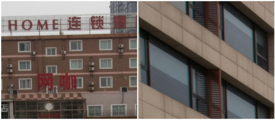 镜头在10mm和24mm的两端,最大光圈下紫边都比较明显。10mm下光圈缩小到F5.6后紫边开始有所减弱,F8后基本消失。而24mm端,光圈在F4.5-F5.6是比较明显的,当光圈缩小到F8.0之后才变得轻微。