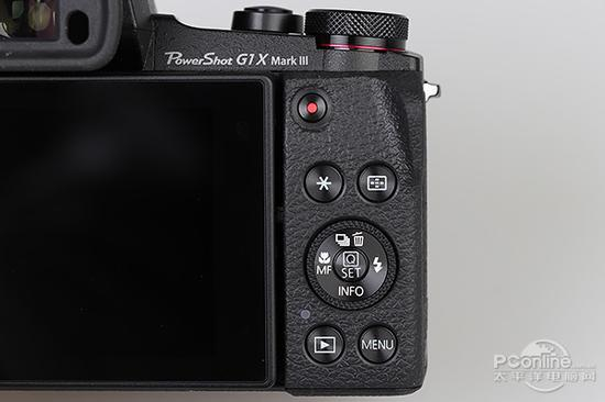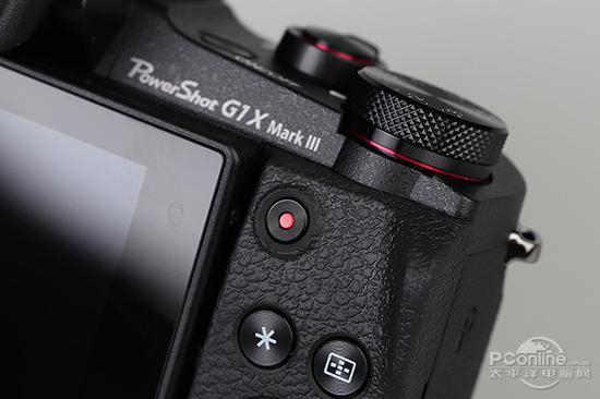 “PowerShot G1 X Mark III”的标志,被转移到基本上方右侧的位置。相较于以前置于顶部的来说,我个人觉得好看了很多,也顺眼了很多。整体按键设置都很齐整,按键力度反馈适中,机身虽小,但按键手感还是不错的。