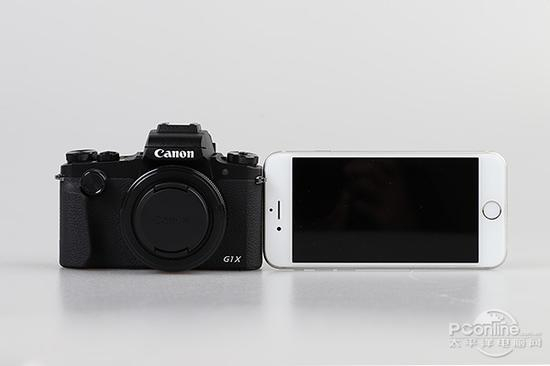 我对比了下,佳能G1 X Mark III的机身长度比4.7英寸的iPhone还要短,放包包里出门随时带着,一点都不成问题。
