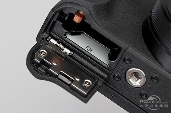 可能由于机身厚度有限,本身旋转屏已经占了一部分的厚度,所以佳能G1 X Mark III左侧没有配备任何接口,只有一个麦克风接收口。