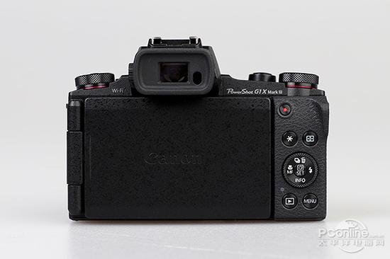 背部的造型基本就是往DSLR机型看齐。3英寸104万点的液晶屏升级为佳能普遍使用的全360°式旋转屏,占了整个背部面积的四分之三,当然了,它是支持自拍的,爱美的女性朋友一定会喜欢这个屏幕。