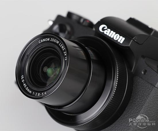 佳能G1 X Mark III的具有固定的全新设计的3倍光学变焦24-72mm f/2.8-5.6镜头,尽管没有上一代镜头的5倍光变的等效24-120mm焦距长,却因CMOS尺寸增大而换来更好的背景虚化效果。镜头配有调节环,可以像DSLR镜头那样通过转动调节环来变焦。不过我个人还是喜欢在快门下方的位置进行电动变焦。