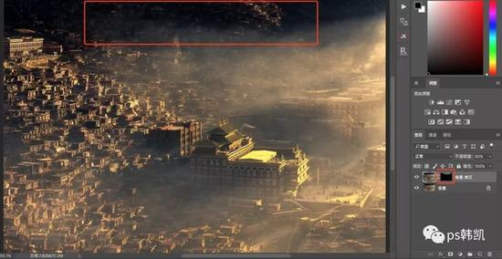 2、为了加强画面的空间感,想把远处红框里面的房子做一些虚化处理。