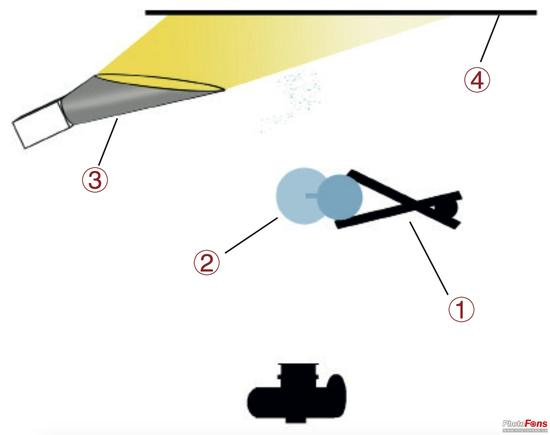 这张照片的关键完全在于图像的动感和构思。它的布光和上一张《水杯》差不多。同样,首先布置好水杯,然后设置背景的光线。出于这张照片的拍摄目的,我看了一些样板照片,以做到准确匹配。我用斜口反光罩精准地调节光线,免去了后期处理。对于这张照片,前期拍摄的 3 次曝光尽量接近最终图像特别重要。