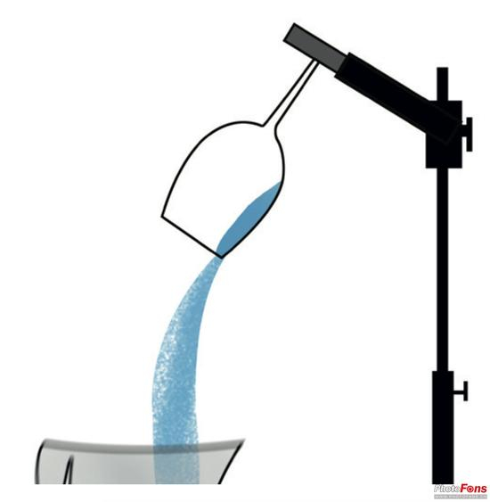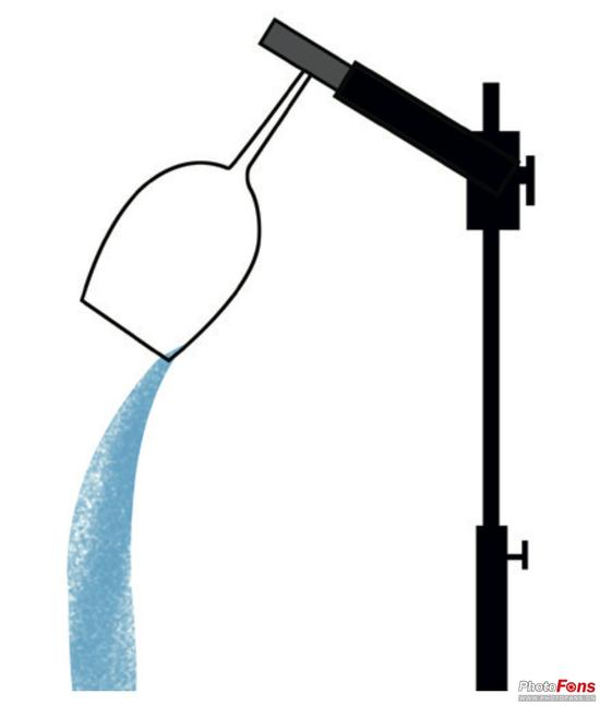 2 玻璃杯。如果水流出得太快,可以稍微抬高杯子的角度。大肚玻璃杯比较适合用于拍摄这张照片,因为水可以流得慢一些。