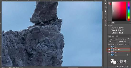 先模拟一下锐化的过程,到后期最后的步骤锐化时,一般是复制背景图层,融合方式改为明度,点击滤镜——锐化,这样的锐化过程,必然会产生白边儿,这里为了更明显的显示,使用较大的半径,可以看到石头的两边出现了白边儿