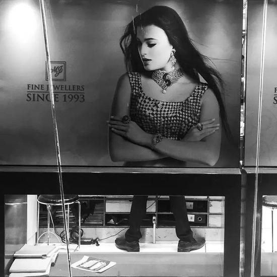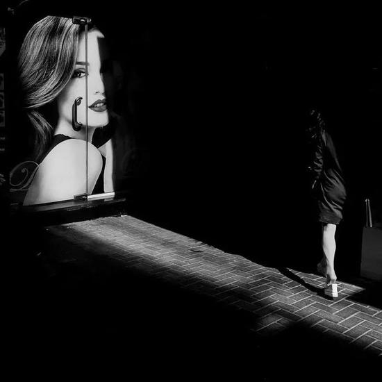 6、标记下街道上的趣味元素,比如指示牌、海报广告、图形绘画等等。记录下位置地点,之后适合的主体出现时,预判其行进的路线,你可以提前在这些背景前待命。