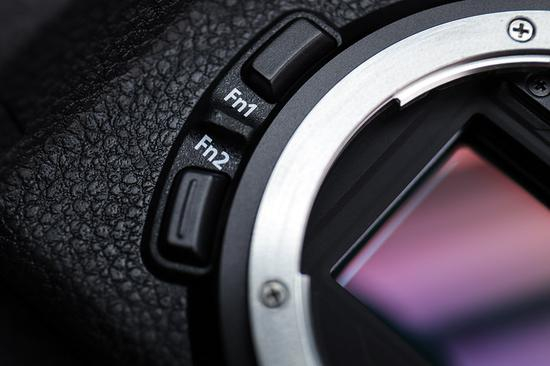 卡口左侧设计了两个Fn自定义按键,默认情况下一个为对焦模式选择一个为白平衡调整