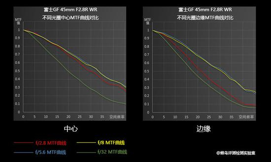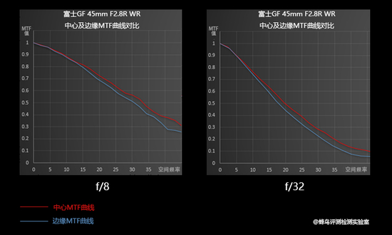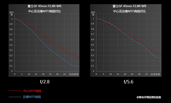 虽然这次是一篇机身的评测,但由于我们之前对于富士GF 45mm F2.8R WR这支镜头的评测并没有进行MTF曲线部分的测试。因此借此机会我们也顺便测试了本次搭载富士GFX 50R机身上的富士GF 45mm F2.8R WR这支镜头的MTF曲线特性。