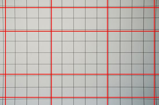 畸变测试依旧使用实拍方式,其中红色为后期添加的参考线。