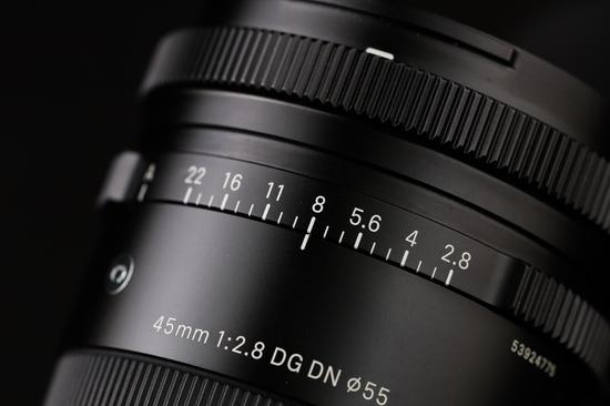 除了对焦环外,适马45mm F2.8 DG DN还配有一个光圈环,从F2.8-F22按1/3档有级调节,将光圈环调至A档时,镜头也可以将光圈设置的权限交还给机身。这样无论对于追求复古拍摄体验的用户,还是更加看重拍摄效率的用户,都可以找到适合自己的镜头使用方式。