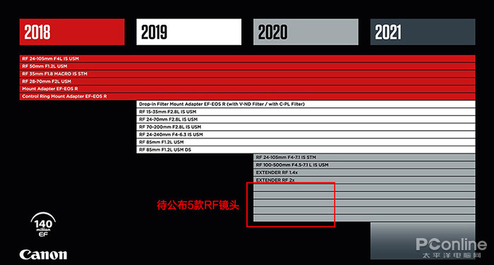 怎么不一样?我列出几款镜头你就明白了——RF15-35mm F2.8 L IS USM、RF24-240mm F4-6.3 IS USM、RF28-70mm F2 L USM,这些镜头在EF镜头群时代都从没出现过。并且在EOS R发布的半年后,定位入门级的EOS RP专微也来得非常快,佳能还是非常懂入门市场的,主打性价比的EOS RP非常适合预算不高的消费者。
