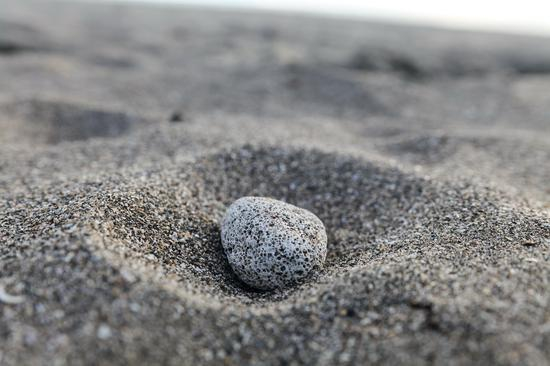 紧靠落在沙滩上约3至4厘米的卵石。背景模糊呈现渐变状。