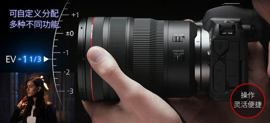 RF镜头上的控制环就是为专微新加入的控制元件,是RF镜头的一大特色,它可以操作机身功能,可自定义为原本在相机上调整的光圈、快门速度、ISO感光度以及曝光补偿等功能,镜头的控制环及对焦环还采用了电子化的设计,可以对旋转方向进行自定义,手动对焦速度也可根据需要或习惯进行自定义,可选择随对焦环的旋转速度变化或与对焦环的旋转量联动。