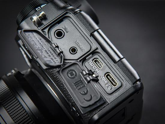 至于相机的其他设计,机身依然采用了双SD卡槽,左侧接口为耳机口、快门线接口、HDMI接口和TYPE-C接口,不过遗憾的是这台机身依然没有独立的耳机接口,包装盒内具有3.5mm-Type-C的转换接头,可以使用Type-C接口当做监听耳机接口。