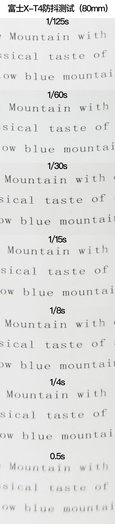 下面我们来测试下这台相机的防抖效果,笔者使用XF16-80mmF4 R OIS WR这枚镜头,使用镜头的80mm端进行拍摄,等效焦距为120mm,测试镜头的实际防抖效果。(测试中光圈保持不变,通过感光度调整快门速度,因此各档画质表现不相同)