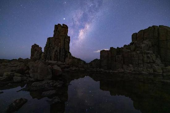 由于拍摄银河都要在较少光污染的地区,拍摄现场漆黑一片,建议白天先踩点,熟悉地形,选定机位。如果是海边,还要查询潮汐情况是否适宜。