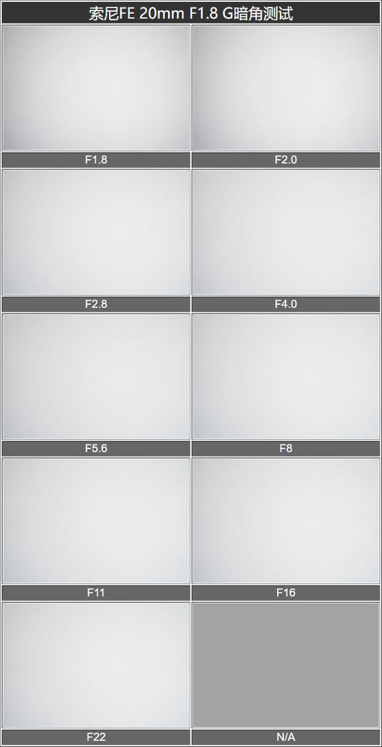 通过实拍测试我们看到,FE 20mm F1.8 G仅在F1.8和F2光圈下有着非常轻微的暗角,从F2.8开始便没有了暗角。总体来看,FE 20mm F1.8 G在暗角控制上做得非常不错,而且如果在相机中开启暗角校正功能,那这个程度的暗角即可轻松去除。