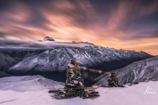 左图对焦前景细节图;右图对焦远景雪山,前景不够清晰