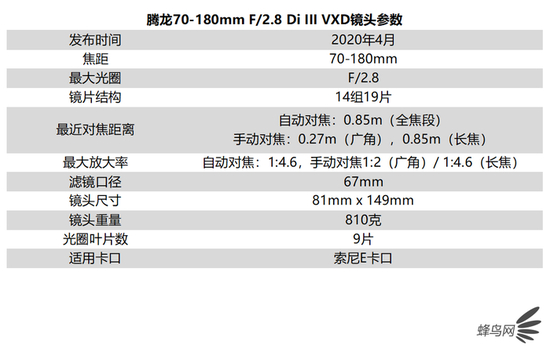 腾龙70-180mm F/2.8 Di III VXD镜头在180mm端前镜组会伸出约2.9cm