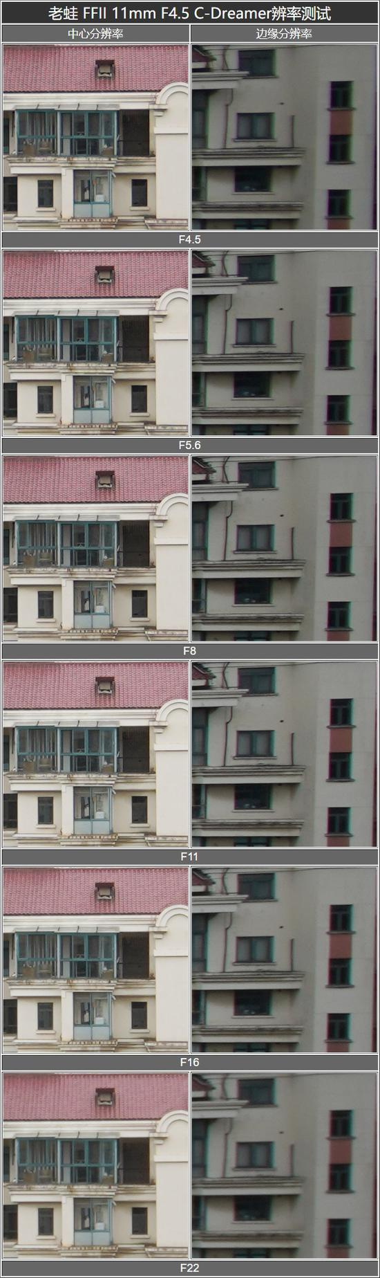 老蛙FFII 11mm F4.5 C-Dreamer分辨率测试对比表