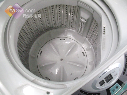 整体颜色以白色为主,采用全塑外壳和不锈钢内桶,放在潮气大的环境下没有什么问题。4.5公斤的最大洗涤容量对于一家三口来说,足可以满足需求。