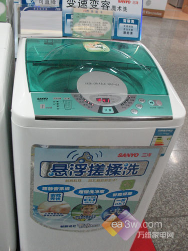 三洋这款XQB50-576洗衣机在外观设计方面,保持了该系列产品的款式,白色的主体机身,绿色的透明上盖,提供水位与洗涤、漂洗、脱水等时间可独立显示。