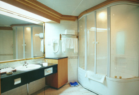 浴室虽小,其色彩也有讲究。若饰以暖色,那么你在宽衣沐浴时心理上会有温暖之感;若涂以冷色,则会使人感到清凉舒适。如果在浴室中配置一些色彩艳丽的毛巾和盥洗用具,将会使小小的浴室增色添美。