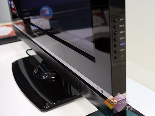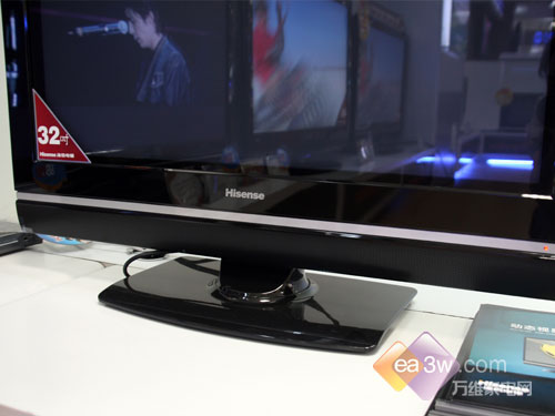 海信TPW3208等离子电视同样以经典的黑色钢琴烤漆为主色调,边框采用时下流行的窄边设计,而在卧式一体化音箱和面板中间则以一条银色亮线隔开,使人感觉独具特色,不过底座采用了比效常见的平板造型。