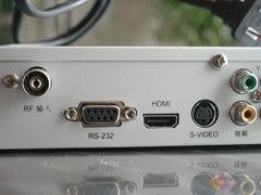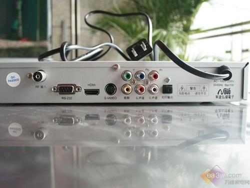 HY2008系列机顶盒的接口全部分布在机身背部,从左到右依次有RF输入、RS232串口、HDMI输入、S端子、分量输入、AV输入及光纤输入,虽然只有一路,但比较齐全。