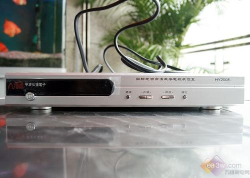 宁波弘扬HY2008系列机顶盒整体采用银色外观设计,前部配有黑色有机玻璃面板进行修饰,左边是产品的LOGO及开关按键。