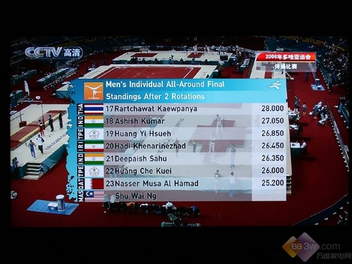 下面是宁波弘扬HY2008系列高清数字电视机顶盒接受的CCTV 高清频道亚运会体操比赛画面的实拍、