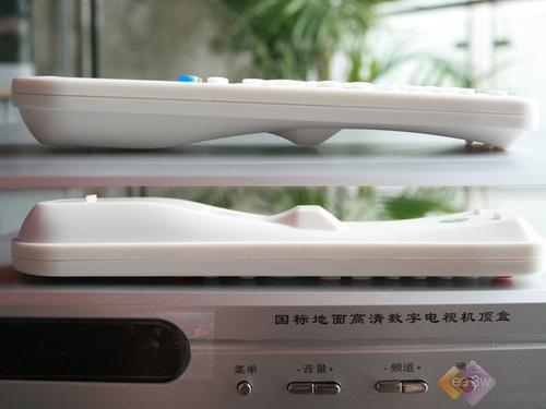 遥控器的背部也采用象牙白的设计,从横截面看上去,遥控器还进行了适合手握的人性化处理。