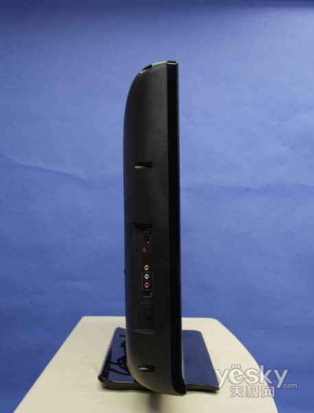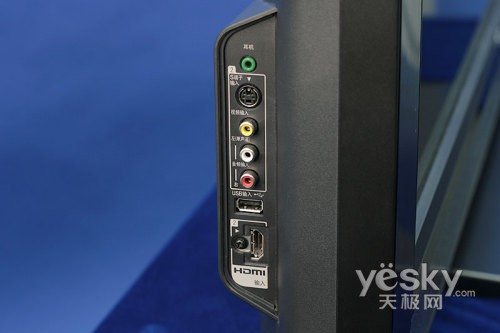 接口方面,主接口区域拥有一组PC音频输入、两组色差输入、S端子及AV输入各一组、音视频输入各一组,当然还有有线电视天线、VGA PC接口、工程维修端口、两组HDMI输入,侧面板功能区包含有HDMI、S端子、AV输入各一组;功能按键上从上至下依次为:电源开关、频道导航组、音量调节组、菜单键及输入讯源选择键。