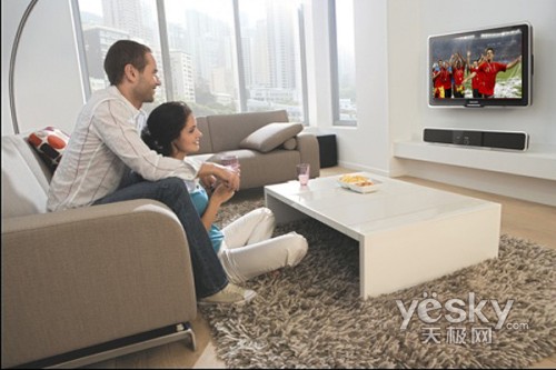 清华同方B76“悦·动”系列则将“独享电视”的理念贯穿于工业设计中,独特的无线蓝牙音频传输接口配合立体声无线耳机,为广大“夜猫族”打造了一片“声动静界”,使凌晨的看球计划、午夜场的大片一网打尽,大可不惊动熟睡的父母、爱人和孩子,独自偷欢。“悦·动”系列蓝牙接口还可与日常使用的蓝牙音箱互联互通,与B76自身的WiHiFi超宽域全真音场系统形成了完美配搭,轻松营造极具空间感的三维环绕立体声场。一个不需要复杂走线的家庭影院随即进驻到“寻常百姓家”。