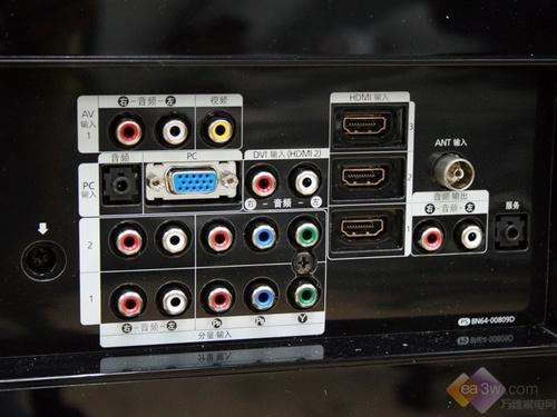 在机身侧面,三星LA46A650A1R液晶电视也毫不吝啬,配备了配备了第4路HDMI接口,1路USB接口、1路S端子、1组AV输入及1个耳机接口,方面常用音视频设备的连接。