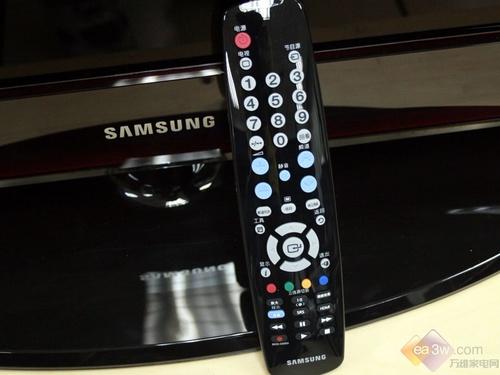 从上图可以看到,三星LA46A650A1R液晶电视的遥控器与机身的设计风格保持了一直,采用高光高亮材质及烤漆工艺,整体看上去非常圆滑、时尚。