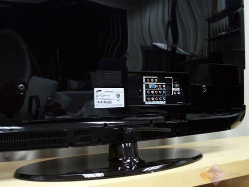从上图可以看到由于三星LA46A650A1R液晶电视的机身背部采用了高光高亮材质,因此从背后观看也显得非常高贵。另外,机身背部的主要接口主要集中在底部向外的凹槽中。