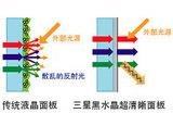 传统液晶面板表面不规则的有机粒子,将外部光源散乱地反射到人眼中,大大降低了色彩表现力和对比度,令影像灰暗不鲜明。三星黑水晶超清晰面板采用尖端科技,令您看到的黑色再也不会呈现灰色,即使在暗环境下一根根黑色发丝也能纤毫毕现,并且大幅提升色彩表现力,令色彩鲜活生动。