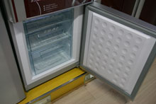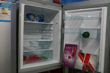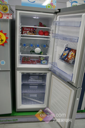 编辑点评:虽说这款产品在容积上有些小,但是设计上毫不逊色,开关门处的空间充分利用起来,下面放比较大的瓶子,如啤酒瓶、红酒瓶等,上面窄小的设计可以放些易拉罐类的饮料,充分展现了它人性化的一面。目前这款产品的价格为2680元,感兴趣的朋友可以到苏宁电器联想桥店进行体验。