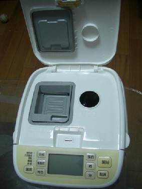 先来看上盖,前方是显示面板及功能选择按钮,一切都内建好程序了,按一按,任何人都能轻松成为烘焙王~~~