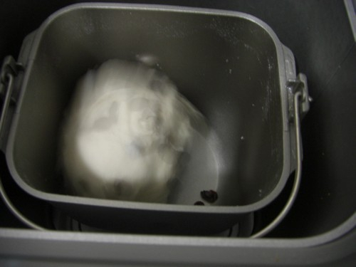 5.偷看一下,*啪啪啪啪*....开始搅拌面团了 (一开始用预约功能,当开始搅拌时我还以为什么东西发出声音,后来才想到说是在搅拌)