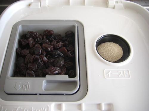 3.放入你想要加的干料(枸杞、五榖、葡萄干等)和酵母