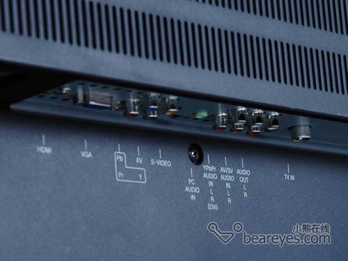 接口方面,拥有3路HDMI接口、1路电脑接口+音频输入、1路天线输入端子(VHF/UHF)、1路S视频输入端子、3组AV视频输入端子、2组 Y.PB/CB.PR/CR分量视频输入端子及其它的监视器、音频输入输出端子等,对于普通家庭的日常使用来说,都可以满足了。