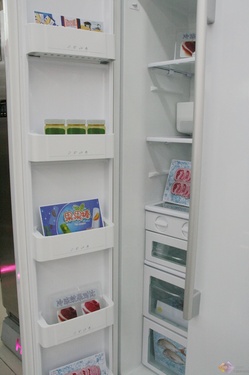 这款三星RSH1STSW采用当前热销的对开门设计,乳白色的外观看起来简洁大方且给人一种温暖的感觉,左侧冰箱门上有一超大LCD显示屏及控制按钮,操作起来非常的方便。