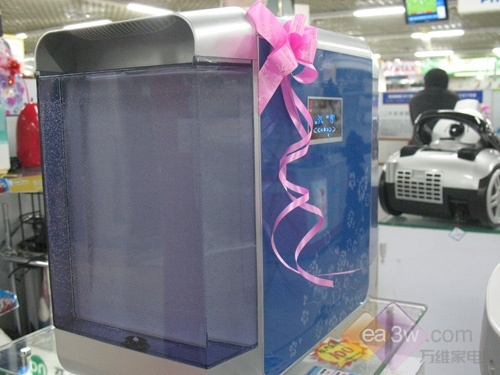 美的S55E BE加湿器采用了蓝色的色调,配以白色的碎花,设计比较美观,位于机身上部的是液晶显示,用户很轻松的了解加湿器的运行状况。