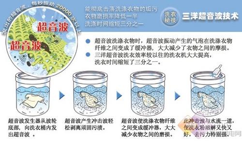功能上,这款洗衣机最大的卖点就是它的超音波洗涤功能,洗衣机发出的超音波,每秒震动20000次以上,震动产生的气泡在洗涤衣物纤维之间变成了缓冲器,大大减少了衣物之间的磨损。三洋超音波洗衣效率较以往的洗衣机大大提高,洗衣时间缩短三分之一。